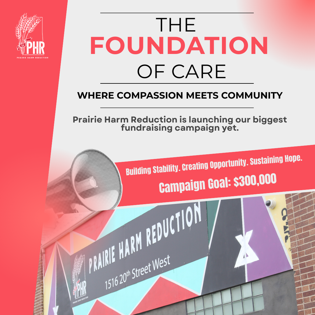 Prairie Harm Reduction is raising $300,000 to protect our Drop-In Centre, create meaningful employment, and sustain essential daily supports. Every dollar helps us Build Stability, Create Opportunity, and Sustain Hope.